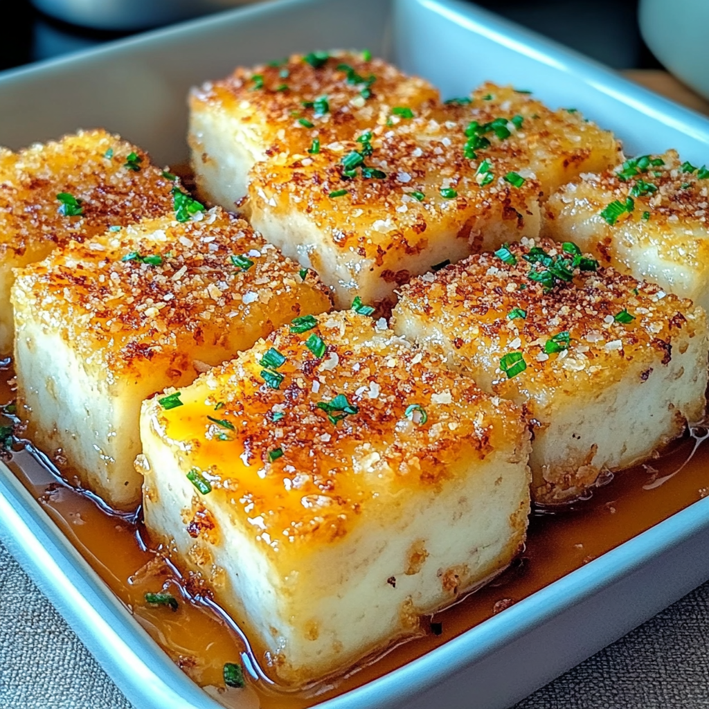 Frying Time: Heat vegetable oil in a skillet over medium-high heat until shimmering but not smoking. Fry tofu cubes in batches until golden brown and crispy—about 3-4 minutes per side should do!