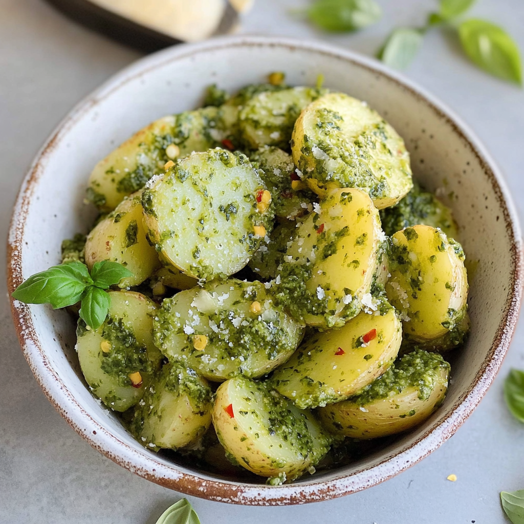 Imagine creamy potatoes swirled in vibrant green pesto, each bite bursting with flavor that dances on your palate. This delightful salad is perfect for any occasion, evoking memories of laughter and joy around the table while promising to elevate your meal experience to new heights.