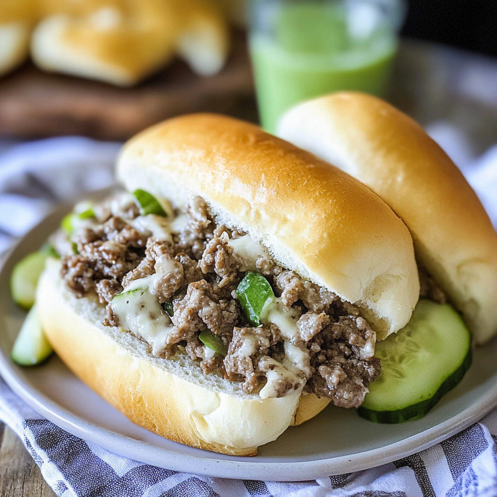 Indulge in the irresistible flavors of a classic Ground Beef Philly Cheese Steak. This savory dish combines juicy ground beef, gooey provolone cheese, and colorful sautéed peppers, all nestled in a perfectly toasted hoagie roll. Ideal for game nights or cozy dinners, this quick and easy recipe will transport your taste buds to the heart of Philadelphia with each delicious bite.