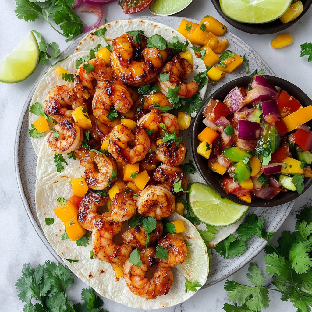 - What toppings pair well with Honey-Chipotle Grilled Shrimp Tacos?
